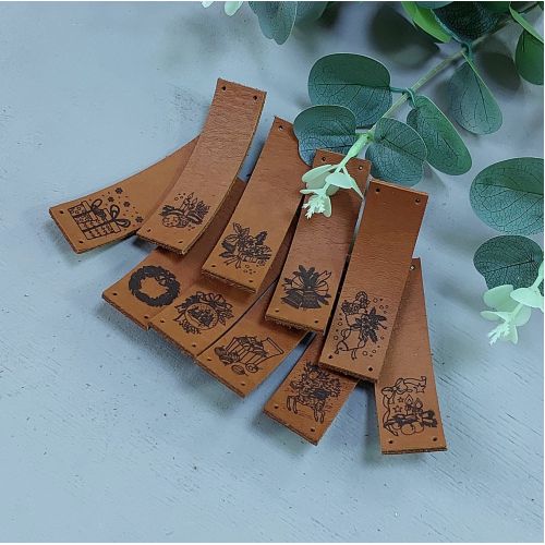 В комплекте 10 пришивных бирочек с разными изображениями на новогоднюю тематику.