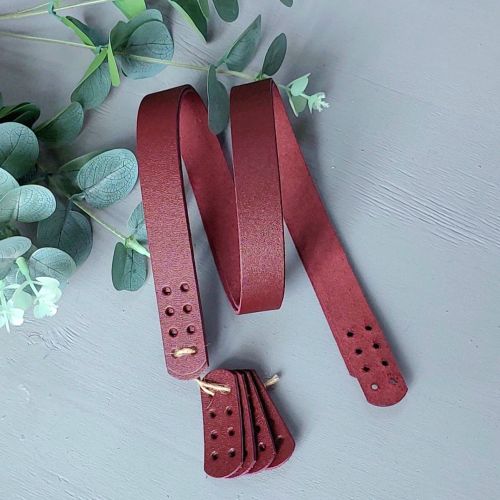 Ручки пришивные длиной 64 см, шириной 2 см изготовлены из натуральной кожи. Ручки имеют по 8 отверстий, с каждой стороны, диаметром 3 мм. Отлично подойдут для вязаных, сшитых и плетёных сумок.