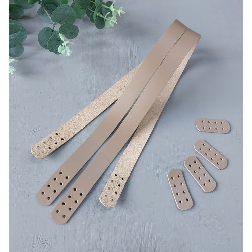 Ручки пришивные длиной 64 см, шириной 2 см изготовлены из натуральной кожи. Ручки имеют по 8 отверстий, с каждой стороны, диаметром 3 мм. Отлично подойдут для вязаных, сшитых и плетёных сумок.