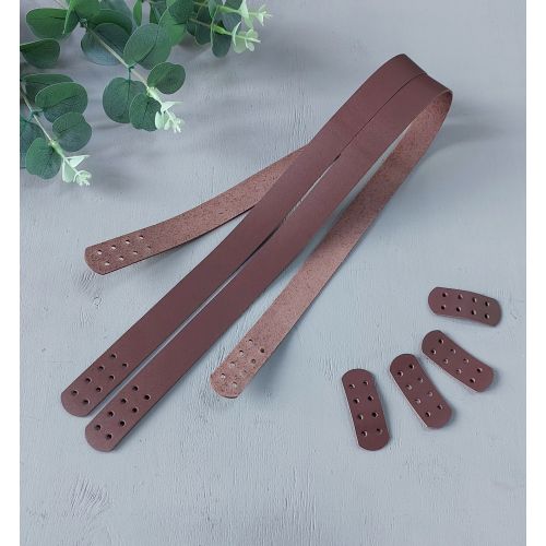 Ручки пришивные длиной 64 см, шириной 2 см изготовлены из натуральной кожи. Ручки имеют по 8 отверстий, с каждой стороны, диаметром 3 мм. Отлично подойдут для вязаных, сшитых и плетёных сумок.
