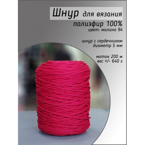 Шнур полиэфирный 5 мм, цвет малина 94