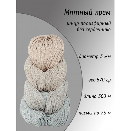 Шнур полиэфирный Lotos braid 3 мм, цвет мятный крем