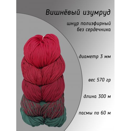 Шнур полиэфирный Lotos braid 3 мм, цвет вишнёвый изумруд